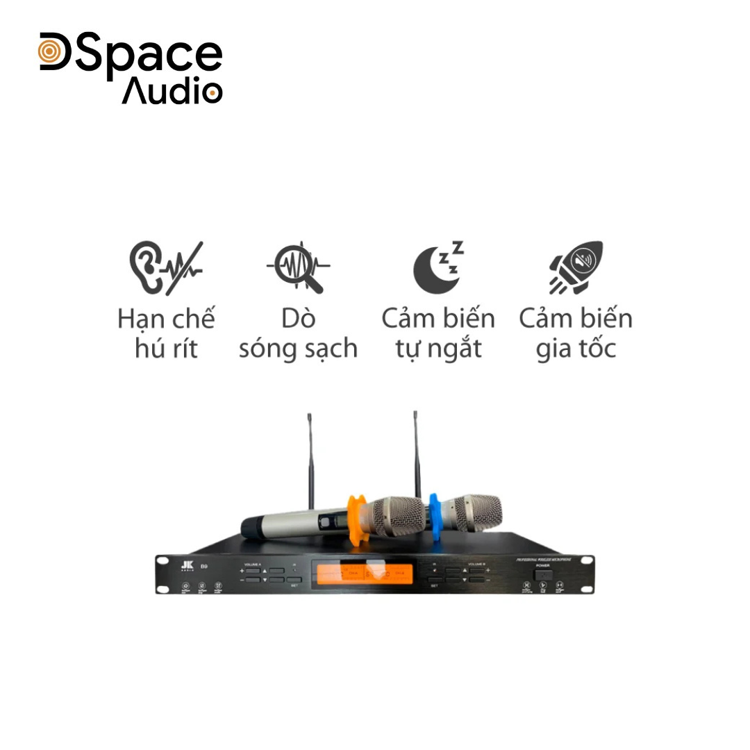 | Micro không dây | JKAudio B9, UHF, 200 kênh, tự dò sóng sạch, cảm biến gia tốc, cảm biến tự ngắt, tay hợp kim + chụp thép phủ nano |