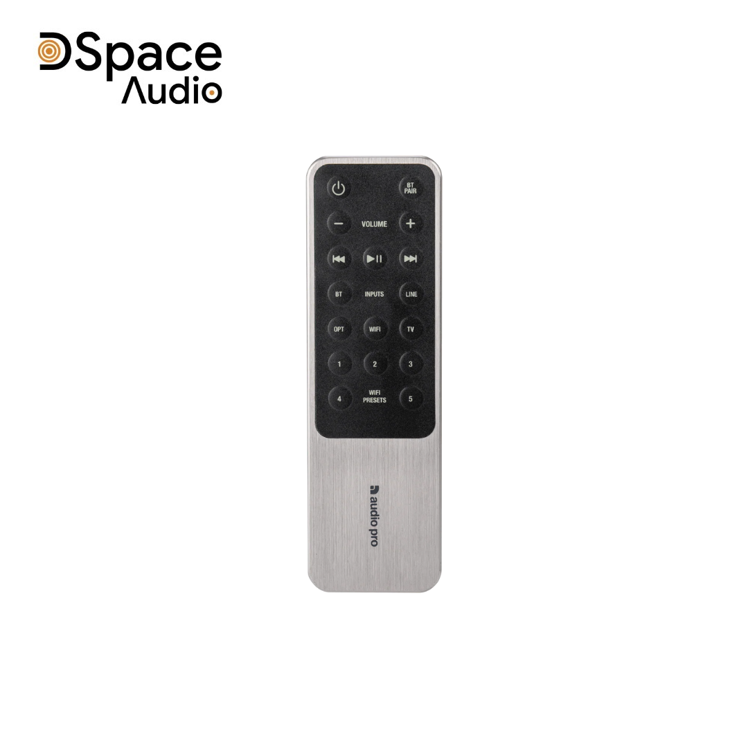 Ngoài ra, Loa Audio Pro A28 W còn được trang bị điều khiển từ xa đi kèm, giúp người dùng thao tác nhanh chóng và thuận tiện trong quá trình sử dụng hằng ngày. Thông qua remote, bạn có thể dễ dàng điều chỉnh âm lượng, chuyển bài, tạm dừng phát nhạc, lựa chọn nguồn vào như Bluetooth, WiFi, Optical, Line hoặc TV mà không cần thao tác trực tiếp trên loa hay điện thoại. Ngoài ra, điều khiển còn tích hợp các nút preset, cho phép truy cập nhanh các chế độ hoặc nguồn phát yêu thích, mang lại trải nghiệm sử dụng đơn giản và linh hoạt hơn trong không gian gia đình.