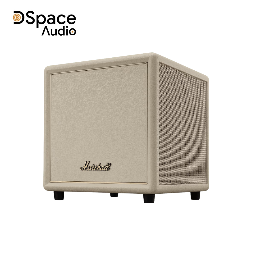 Phần mặt lưới loa được làm từ giấy ép thủ công, mang lại độ bền cao và khả năng cộng hưởng âm học tự nhiên. Viền khung kim loại bao quanh mặt lưới là điểm nhấn của thiết kế, đồng thời tăng độ cứng cáp cho toàn bộ thân loa. Logo Marshall vàng ánh nổi bật ở trung tâm như một lời khẳng định về di sản âm thanh không thể nhầm lẫn. Heston Sub 200 có hai lựa chọn màu: Đen (Black) mạnh mẽ, trầm tĩnh và Kem (Cream) sang trọng, tinh tế — cả hai đều dễ dàng hòa hợp với mọi phong cách nội thất, từ cổ điển đến hiện đại.