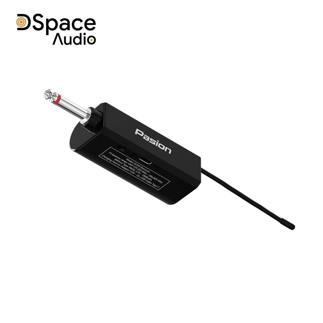 Micro PASION ECHO đi kèm một bộ thu tín hiệu (receiver) di động sử dụng viên pin sạc bằng cổng Type C. Bộ thu được thiết kế với ngõ ra tín hiệu dạng jack 6.5mm và có thể gập lại một góc 90o giúp bạn lắp đặt hoặc cất giữ linh hoạt hơn. Ngoài ra, receiver cũng được trang bị thêm một đầu chuyển audio qua jack 3.5mm để người dùng có thêm nhiều phương thức kết nối tiện dụng.