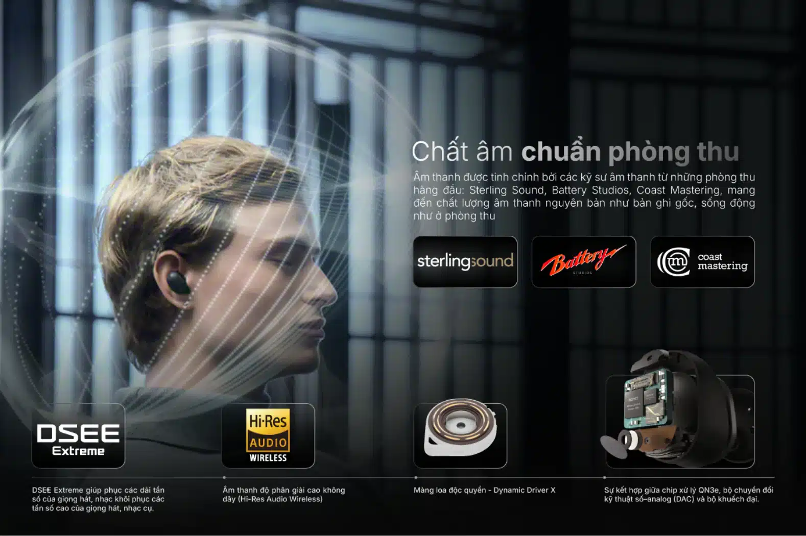Đặc biệt hơn, tai nghe WF-1000XM6 còn được hỗ trợ bởi các công nghệ xử lý âm thanh tiên tiến, giúp tái hiện rõ ràng những chi tiết nhỏ nhất trong bản nhạc, đồng thời mở rộng không gian âm thanh để mang lại cảm giác tự nhiên và chân thực hơn. Âm thanh cũng được tinh chỉnh kỹ lưỡng nhằm đạt độ cân bằng tối ưu giữa các dải tần, giúp trải nghiệm nghe luôn ổn định dù bạn sử dụng tai nghe trong bất kỳ môi trường nào.