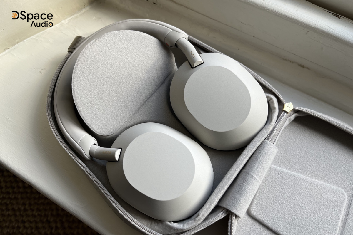 Phần đệm tai và đệm quai làm từ da mềm, ôm khít đầu nhưng được tối ưu lực ép, hạn chế gây đau hay bí tai khi đeo lâu. Trọng lượng chỉ khoảng 250 g giúp WH‑1000XM5 đeo lâu vẫn thoải mái, phù hợp cho người phải làm việc hoặc di chuyển nhiều giờ. Tai nghe có thể gấp gọn và đi kèm hộp đựng, tiện mang theo khi đi làm, học tập hay công tác.